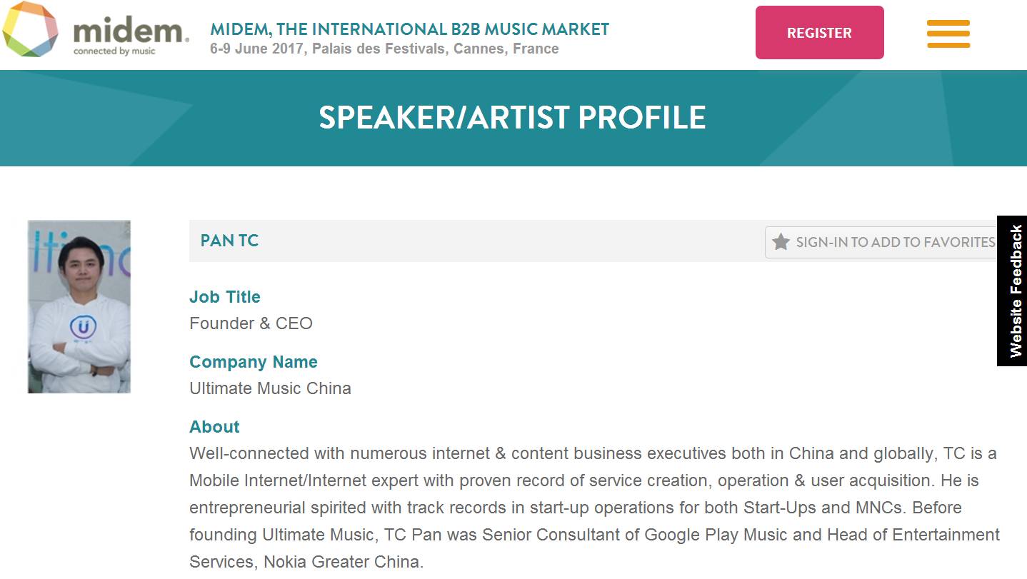 MIDEM 2016,爱听卓乐CEO潘才俊就